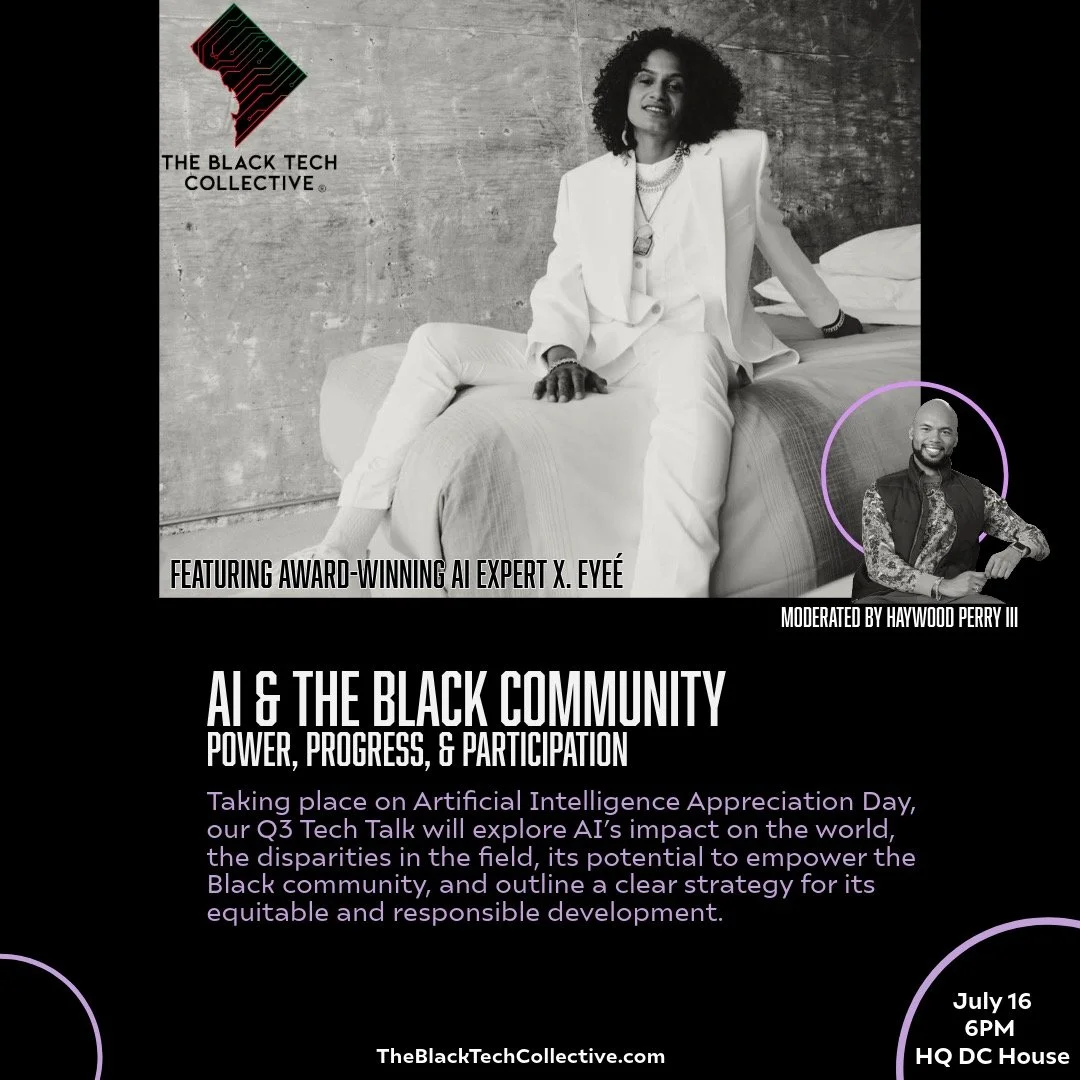 Q3 Tech Talk - AI and the Black Community - Power, Progress, and Participation Tuesday, July 16, 2024 6:00 PM 9:00 PM HQ DC House 600 F Street NW Washington, DC USA (map) Google Calendar ICS
